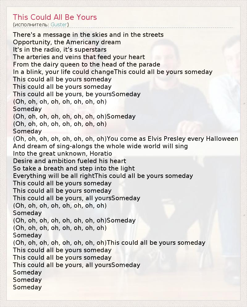 А как ты думаешь, о чем песня "This Could All Be Yours" ?