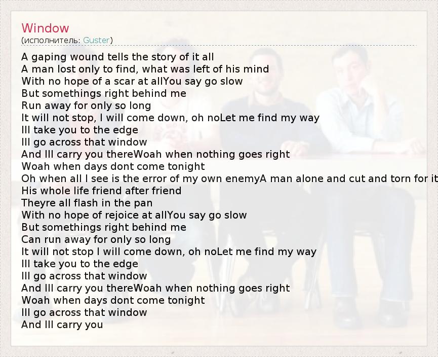 Это интересно:Guster - американская группа альтернативного рока, которая известна ее живыми концертами, юмором, и культом после. Группа сформирована Адамом Гарднером, Раяном Миллером, и Брайеном Розенуоркелем в 1991Группа осталась "подземной" для своих первых двух альбомов, "Parachute" (1994) и "Goldfly" (1997), но ворвалась в музыкальную индустрию в 1999 с ее третьим альбомом студии, "Lost and Gone Forever",... продолжение