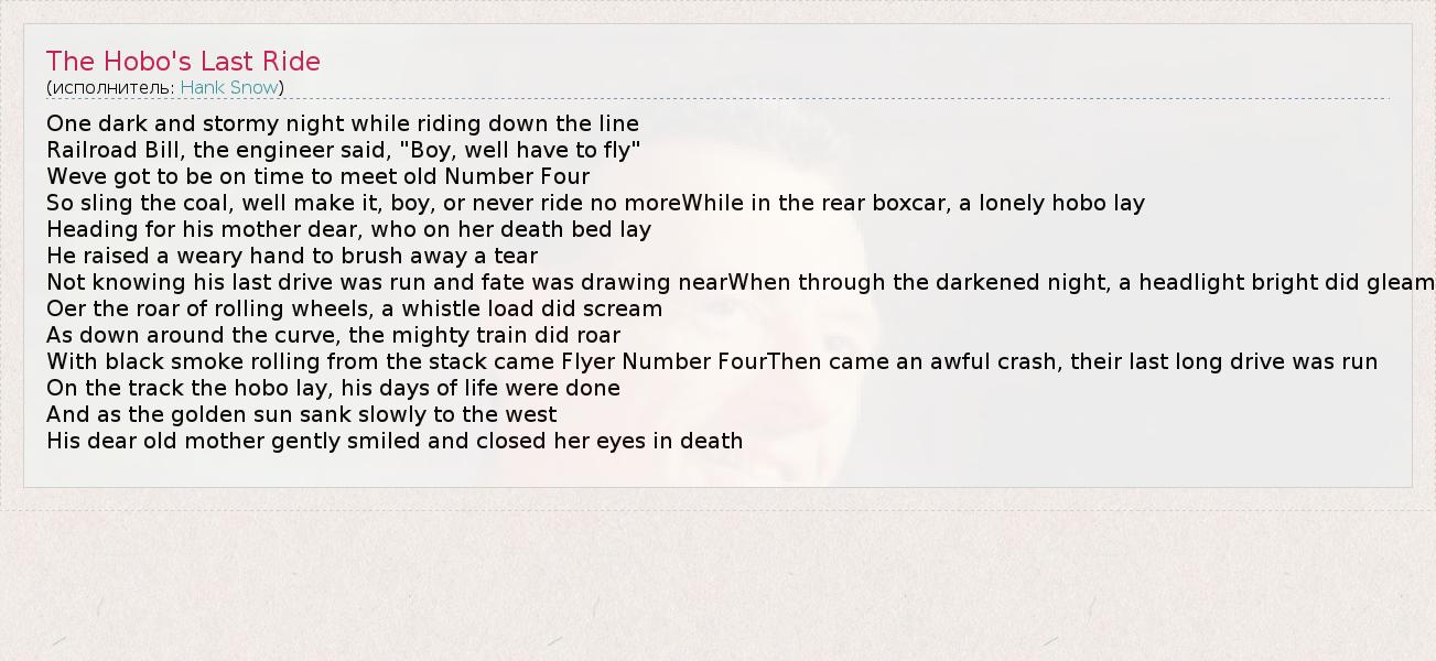 А как ты думаешь, о чем песня "The Hobo's Last Ride" ?