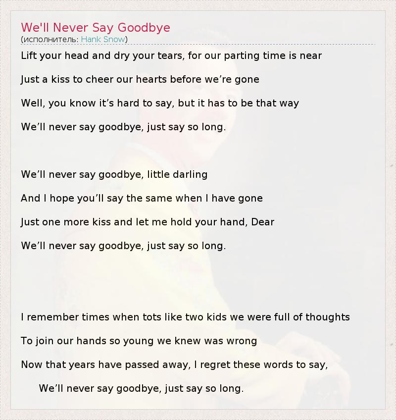 А как ты думаешь, о чем песня "We'll Never Say Goodbye" ?