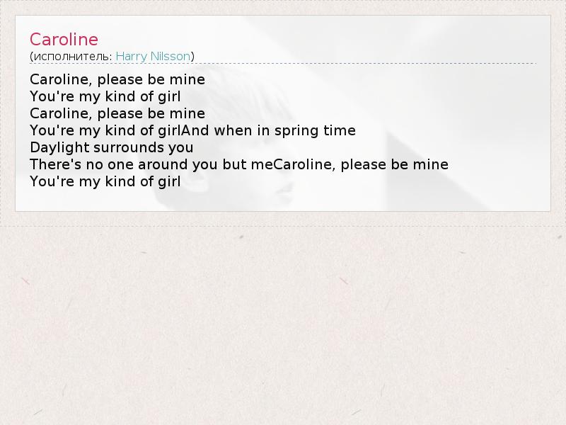 А как ты думаешь, о чем песня "Caroline" ?