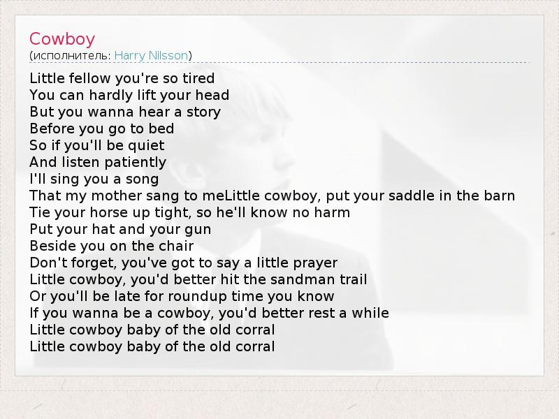 That my mother sang to meLittle cowboy, put your saddle in the barn