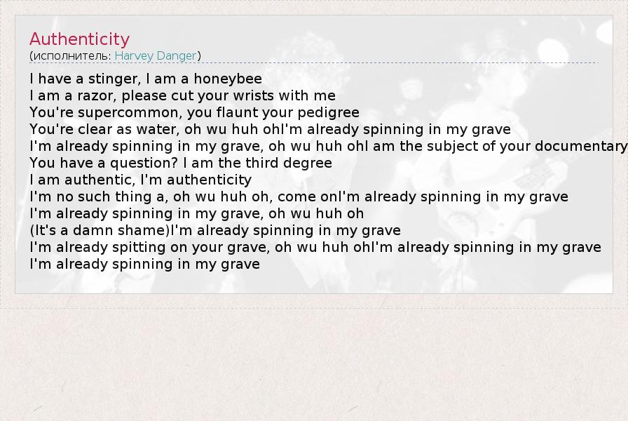 I'm no such thing a, oh wu huh oh, come onI'm already spinning in my grave