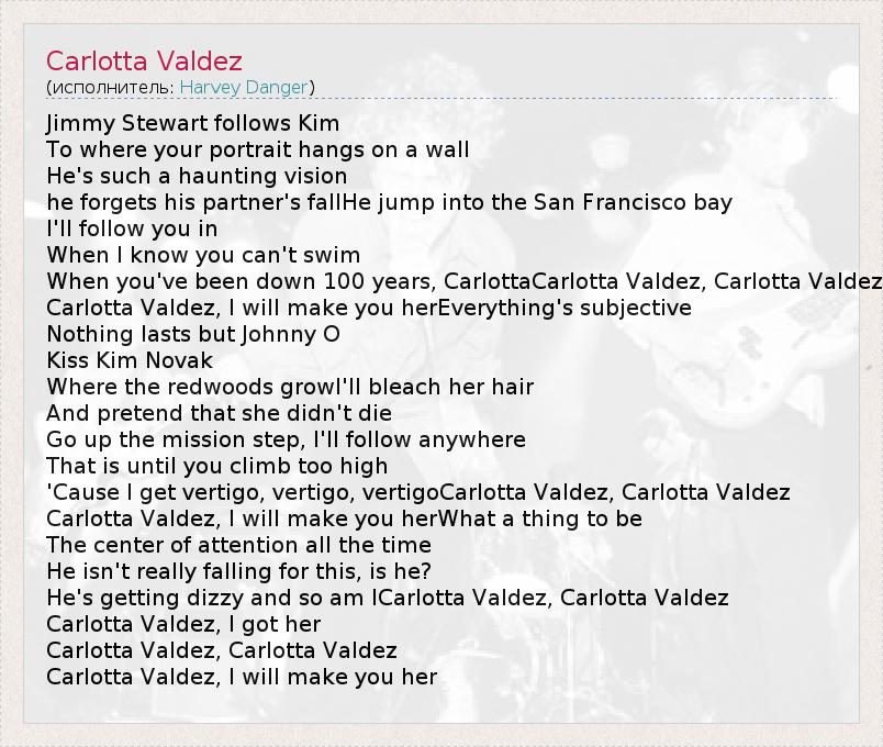 А как ты думаешь, о чем песня "Carlotta Valdez" ?