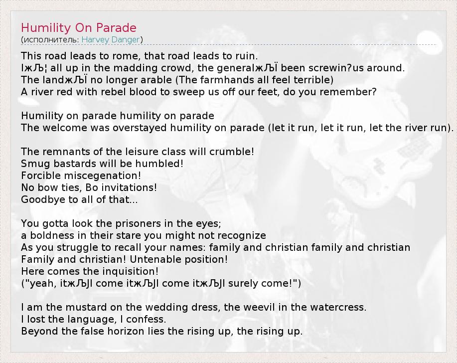 А как ты думаешь, о чем песня "Humility On Parade" ?