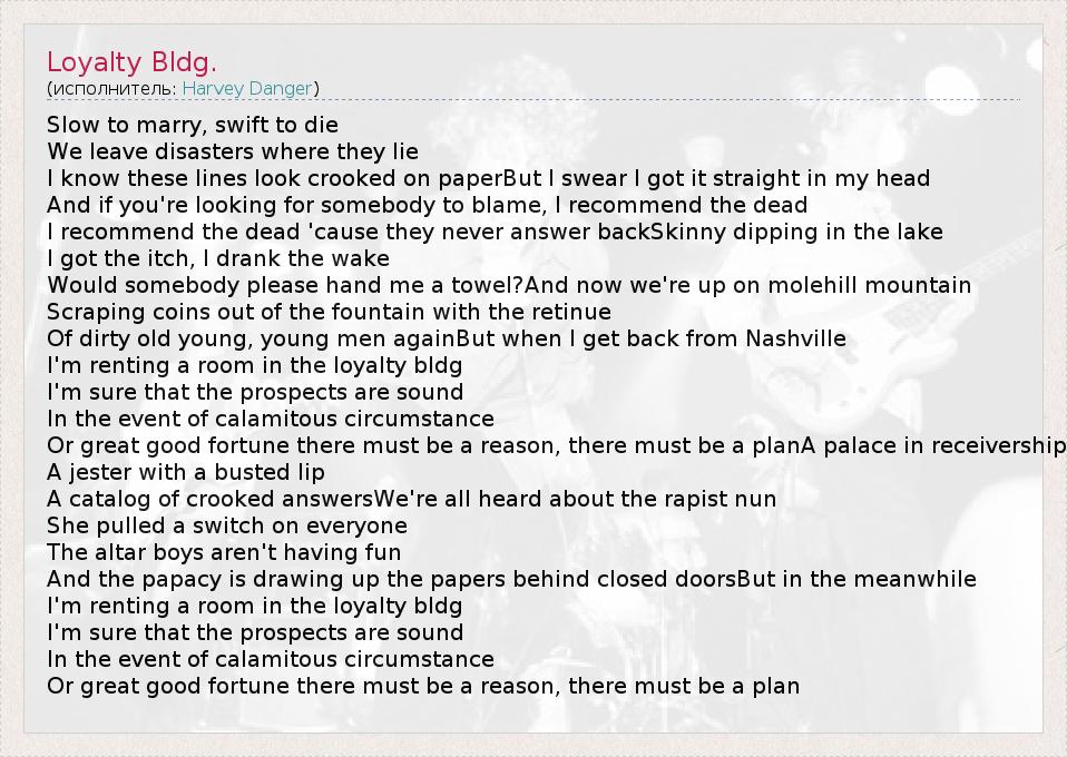 А как ты думаешь, о чем песня "Loyalty Bldg." ?