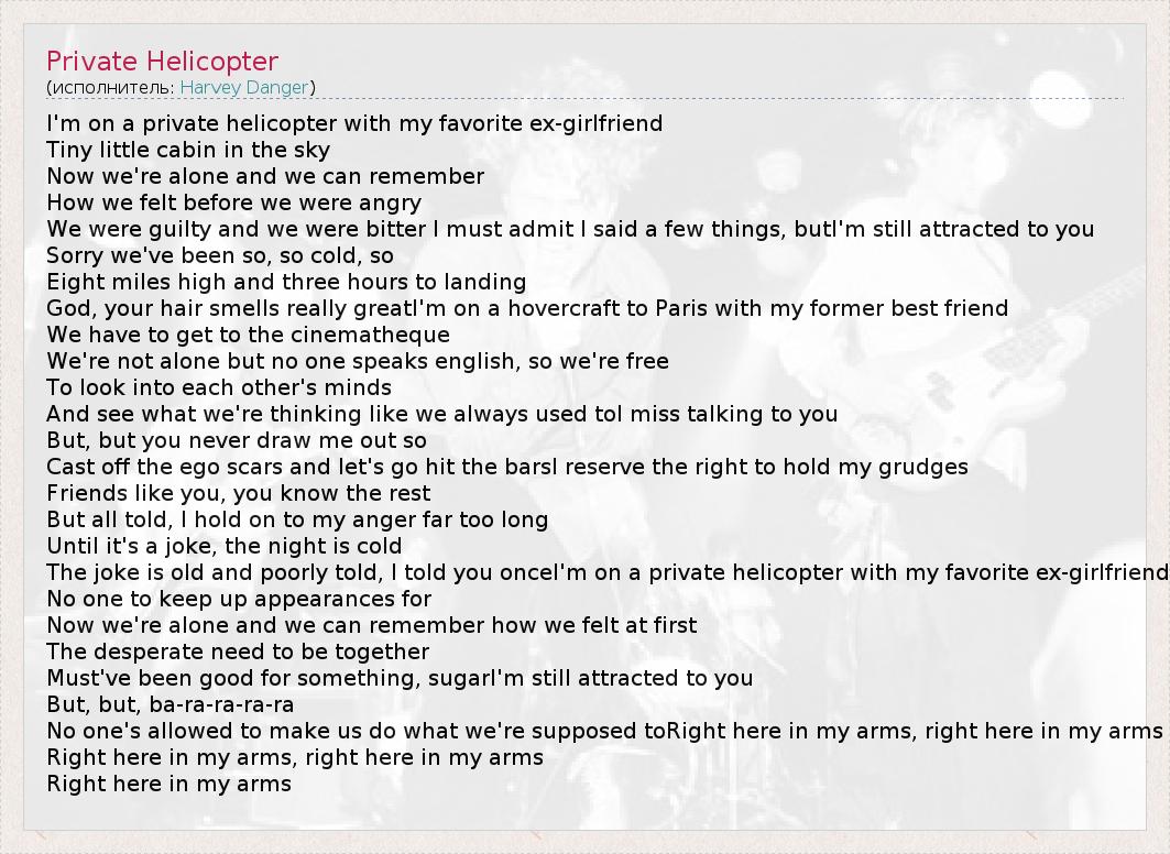 А как ты думаешь, о чем песня "Private Helicopter" ?