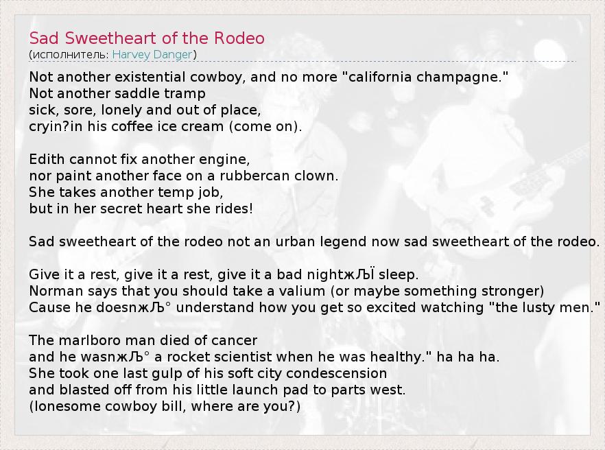 ГлавнаяИсполнителиHarvey DangerSad Sweetheart of the Rodeo