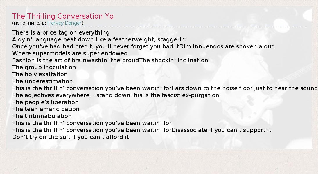 ГлавнаяИсполнителиHarvey DangerThe Thrilling Conversation Yo
