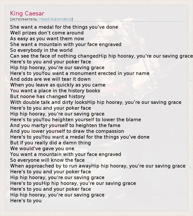 А как ты думаешь, о чем песня "King Caesar" ?
