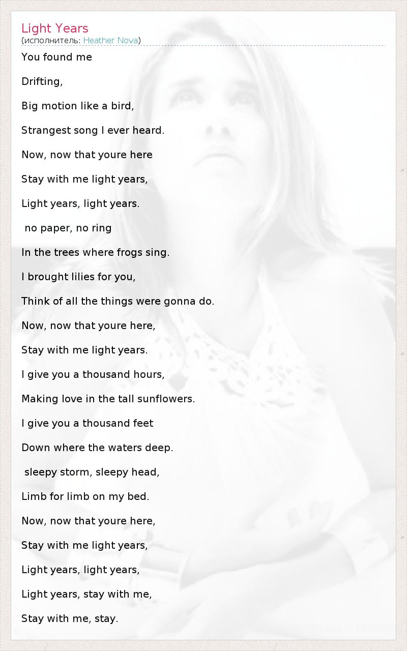 Это интересно:Heather Nova (настоящее имя Heather Allison Frith) родилась на Бермудах 6 июля 1967 года. На скрипке и гитаре Хитер начинает играть рано для своих лет, но первую песню напишет только к 12 годам. После окончания школы в Новой Англии, куда переехала её семья, в 1983 году Хитер поступила в Род-айлендскую школку дизайна (RISD), где она пробует себя в качестве автора сценария к фильмам. Она также посещала занятия по поэзии... продолжение