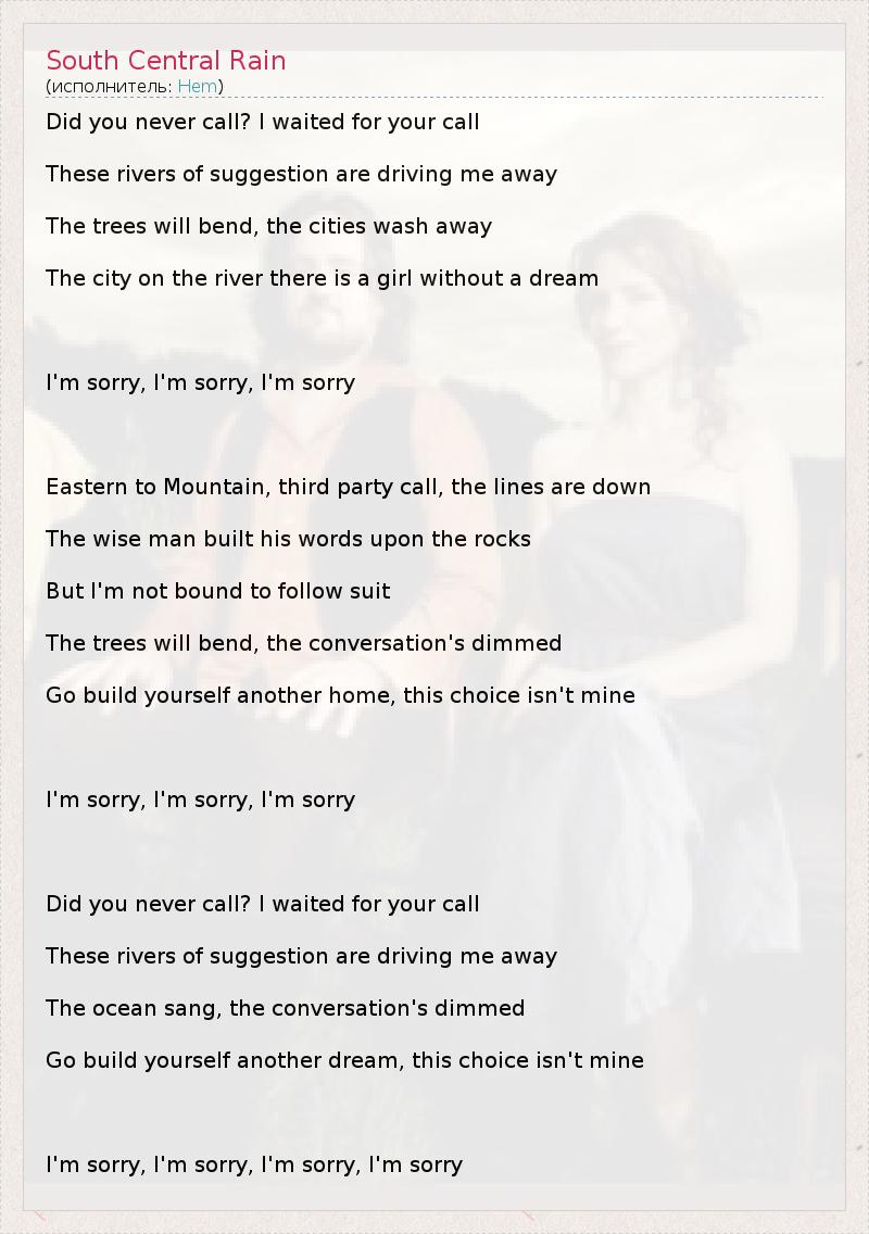 А как ты думаешь, о чем песня "South Central Rain" ?