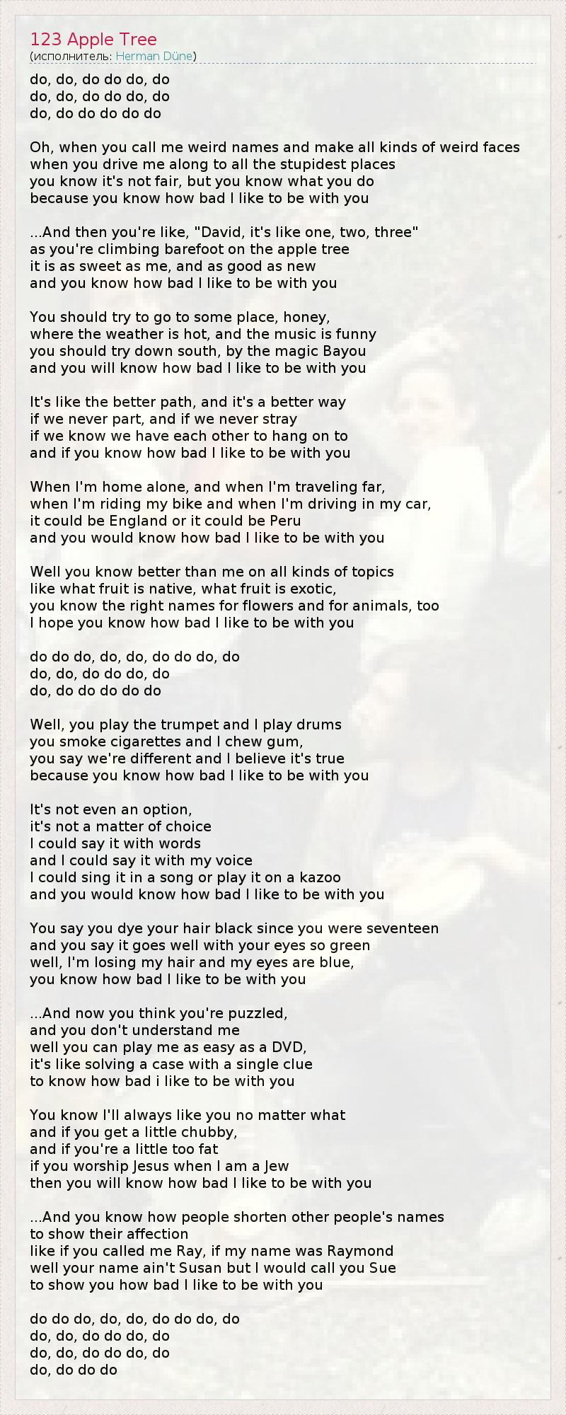 А как ты думаешь, о чем песня "123 Apple Tree" ?
