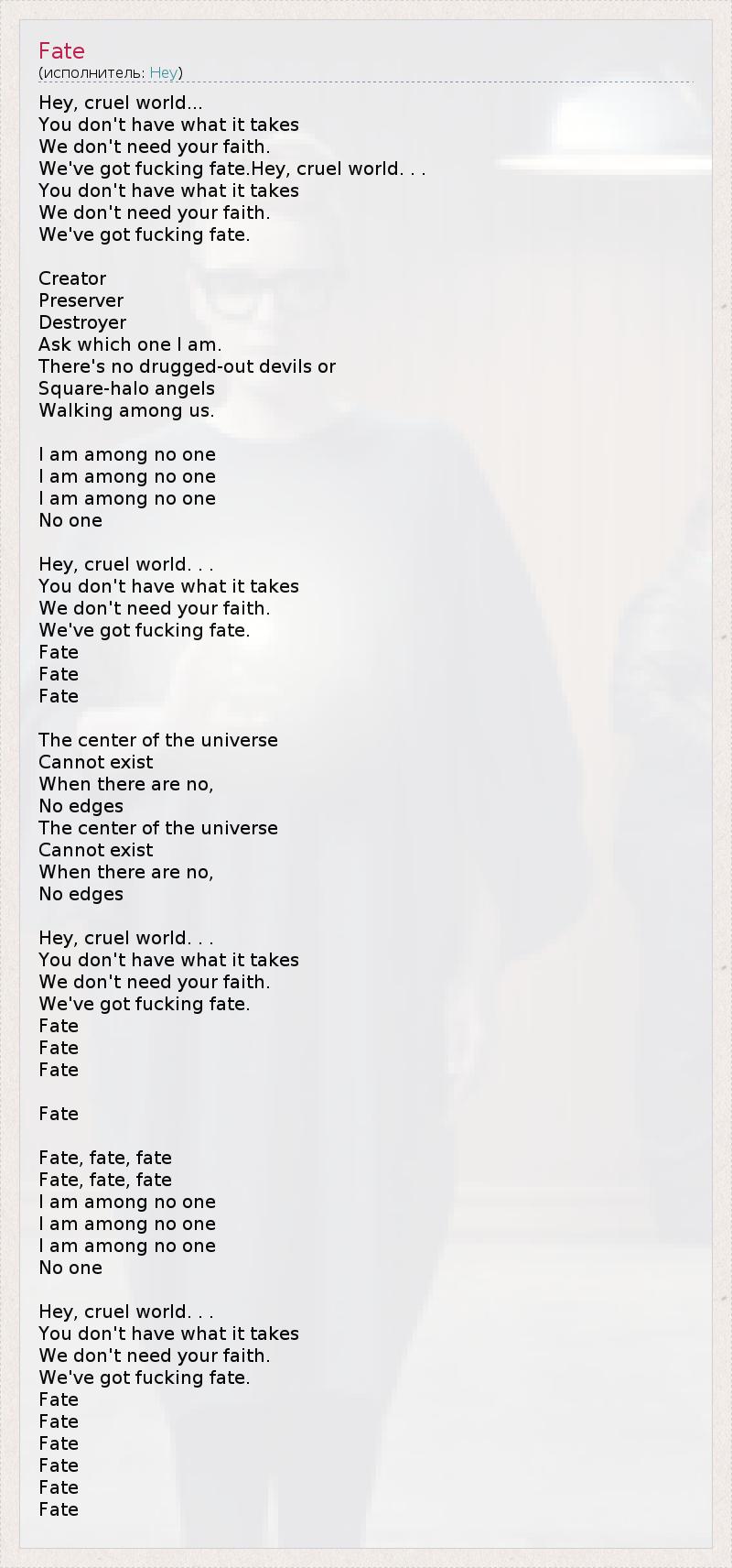 У нас есть своя е**ная судьба. Эй, жестокий мир...