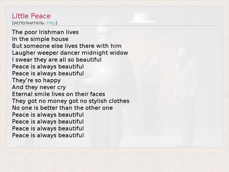 А как ты думаешь, о чем песня "Little Peace" ?