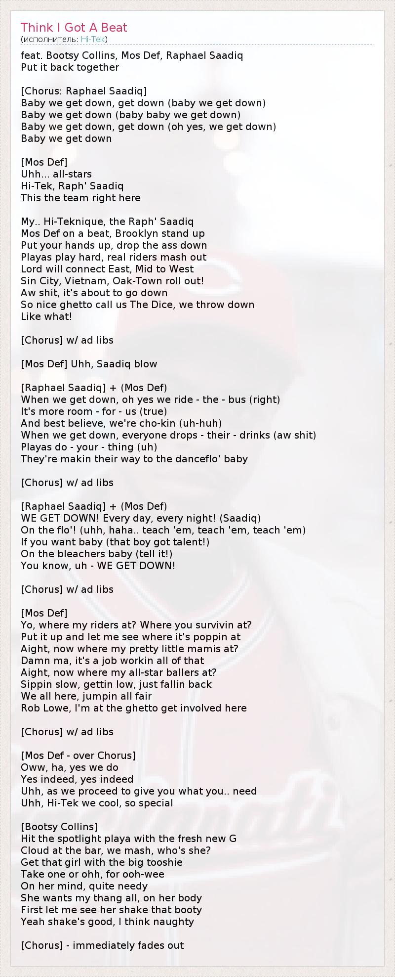 А как ты думаешь, о чем песня "Think I Got A Beat" ?