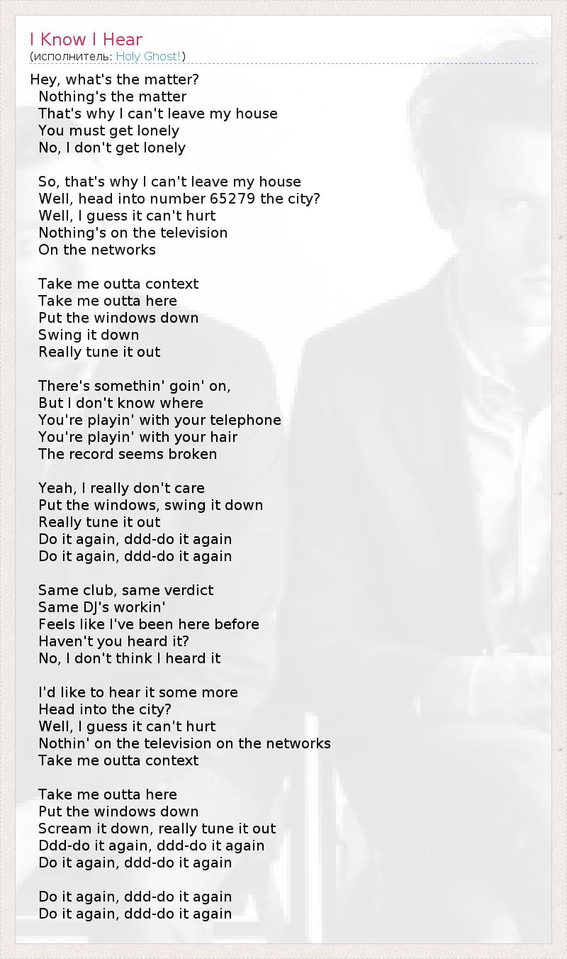 А как ты думаешь, о чем песня "I Know I Hear" ?