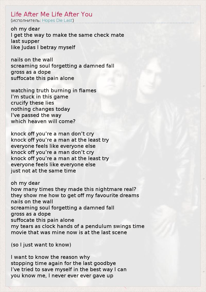 А как ты думаешь, о чем песня "Life After Me Life After You" ?