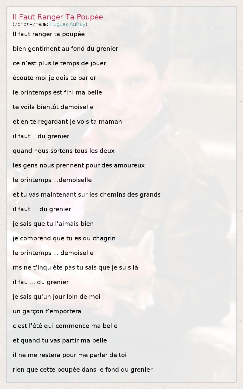 А как ты думаешь, о чем песня "Il Faut Ranger Ta Poupée" ?