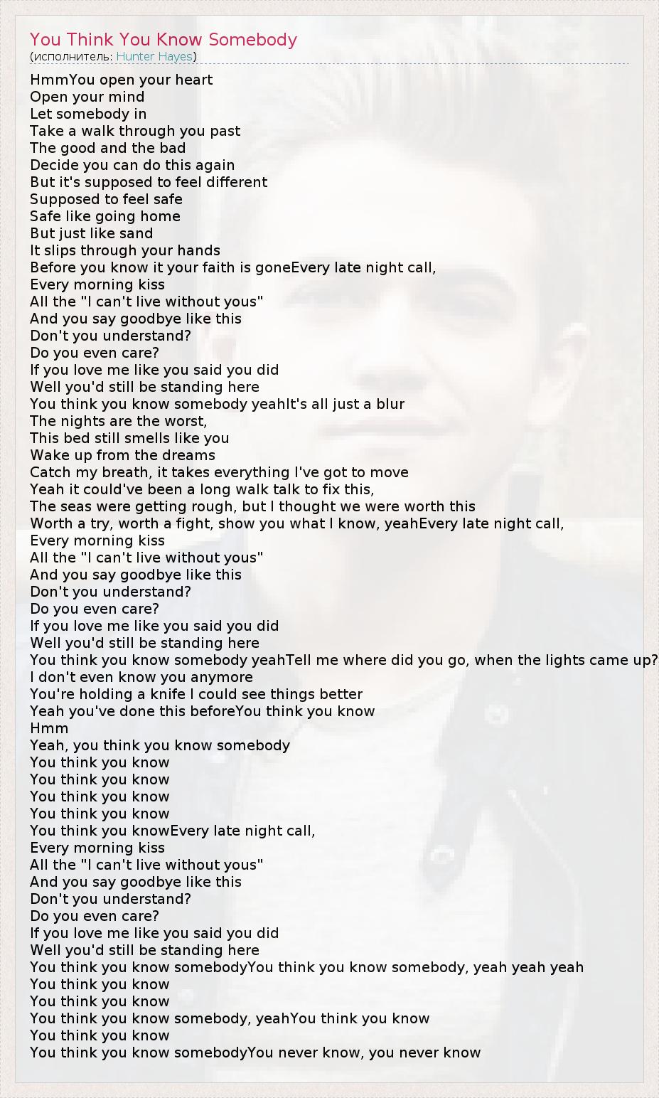 ГлавнаяИсполнителиHunter HayesYou Think You Know Somebody