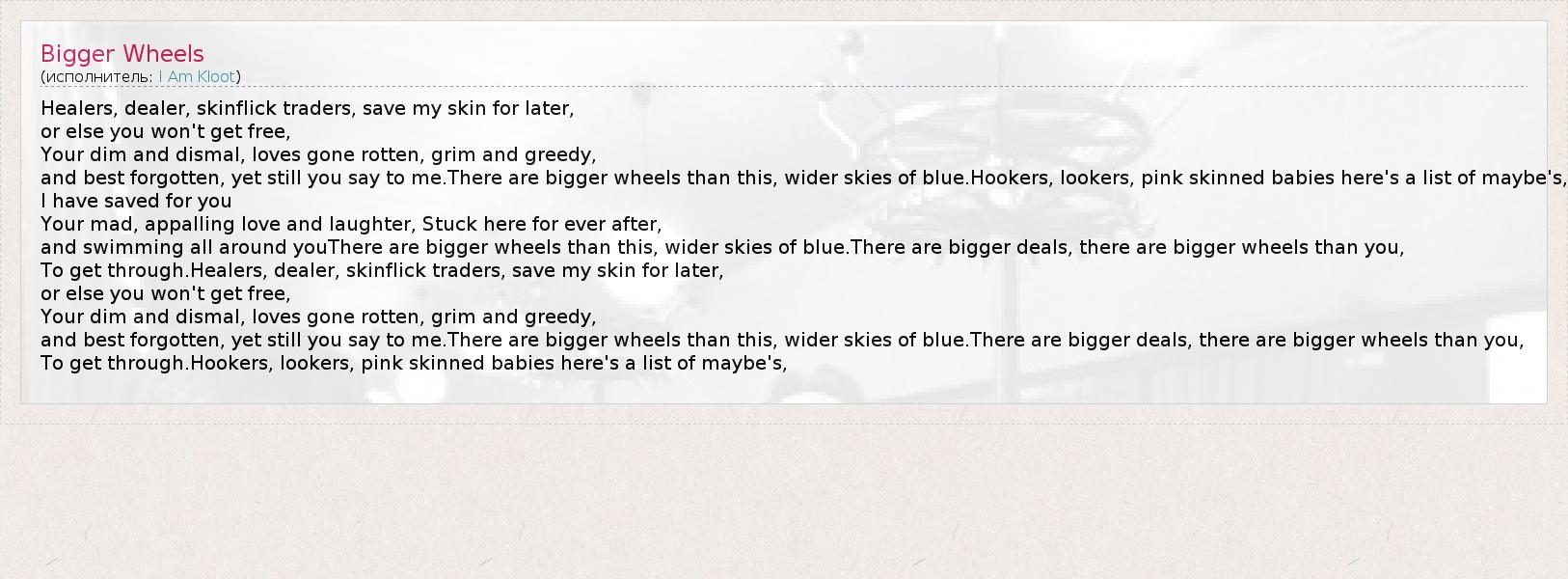 А как ты думаешь, о чем песня "Bigger Wheels" ?
