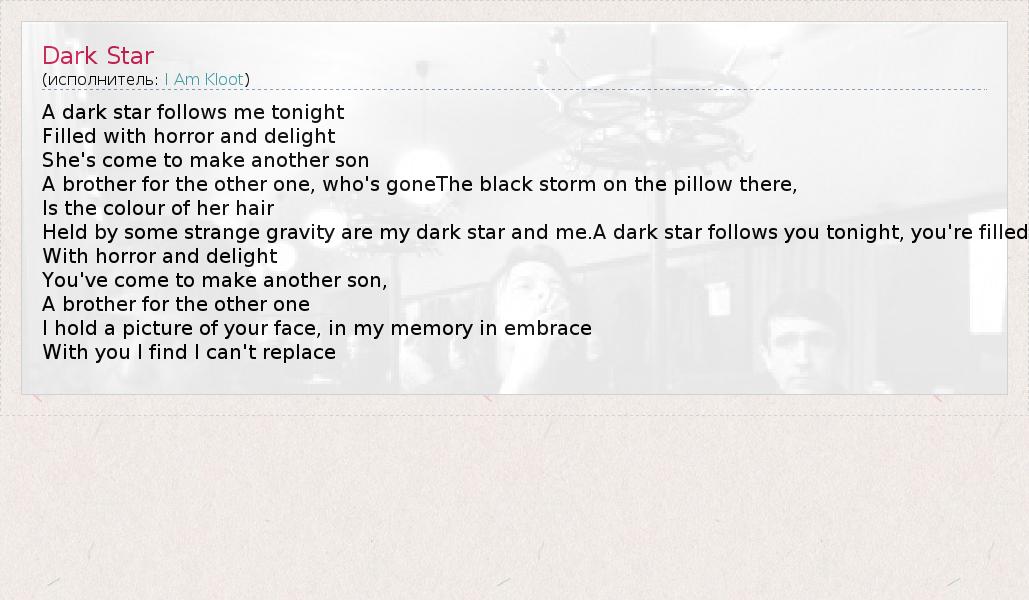 Held by some strange gravity are my dark star and me.A dark star follows you tonight, you're filled