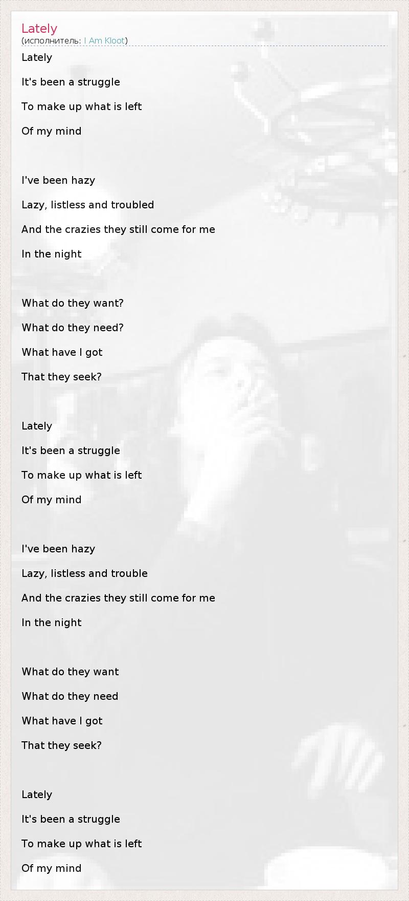 А как ты думаешь, о чем песня "Lately" ?