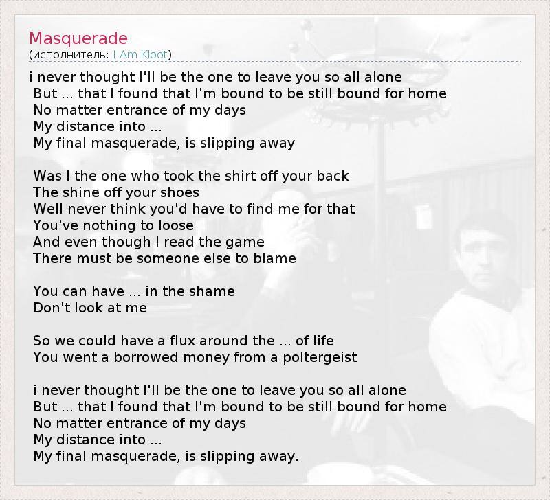 А как ты думаешь, о чем песня "Masquerade" ?
