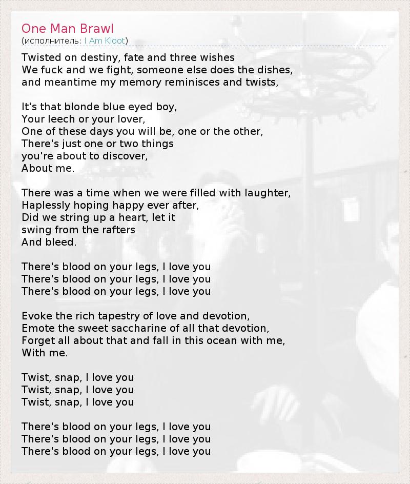 А как ты думаешь, о чем песня "One Man Brawl" ?