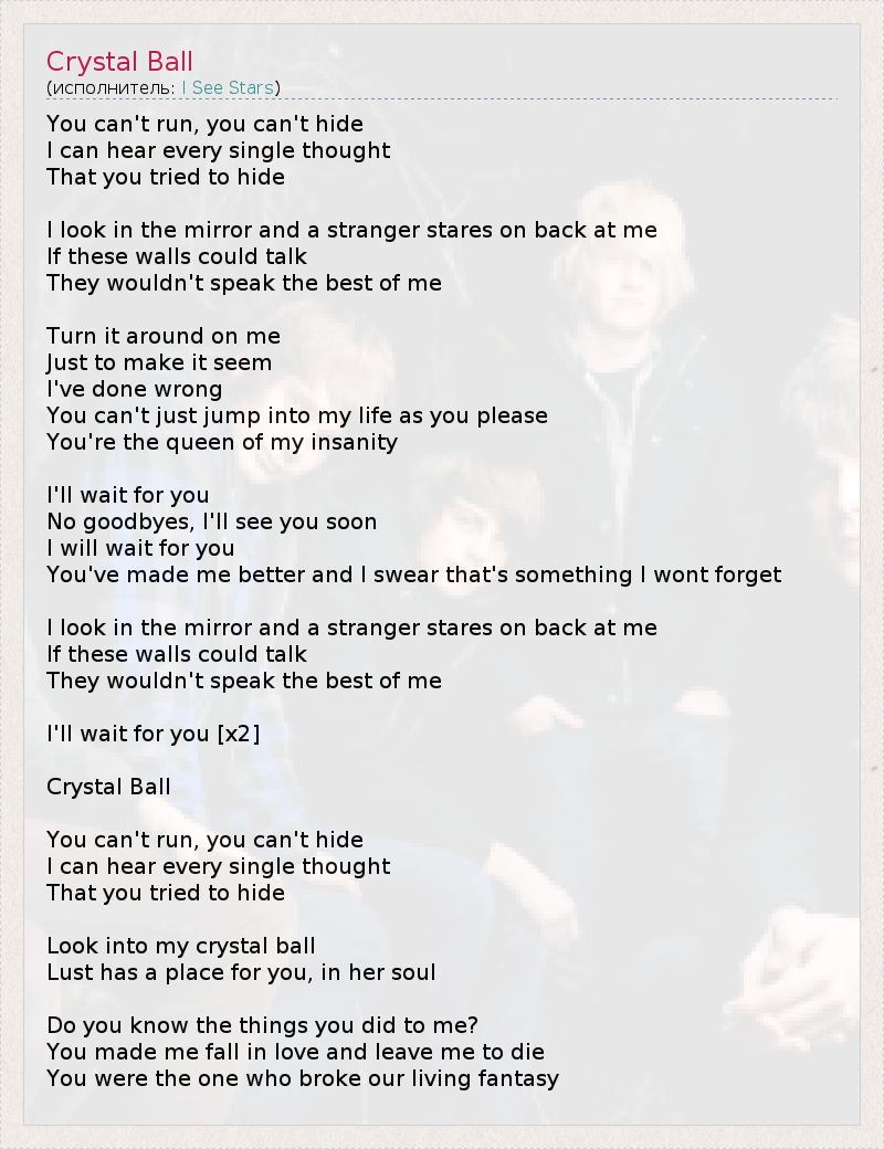 А как ты думаешь, о чем песня "Crystal Ball" ?