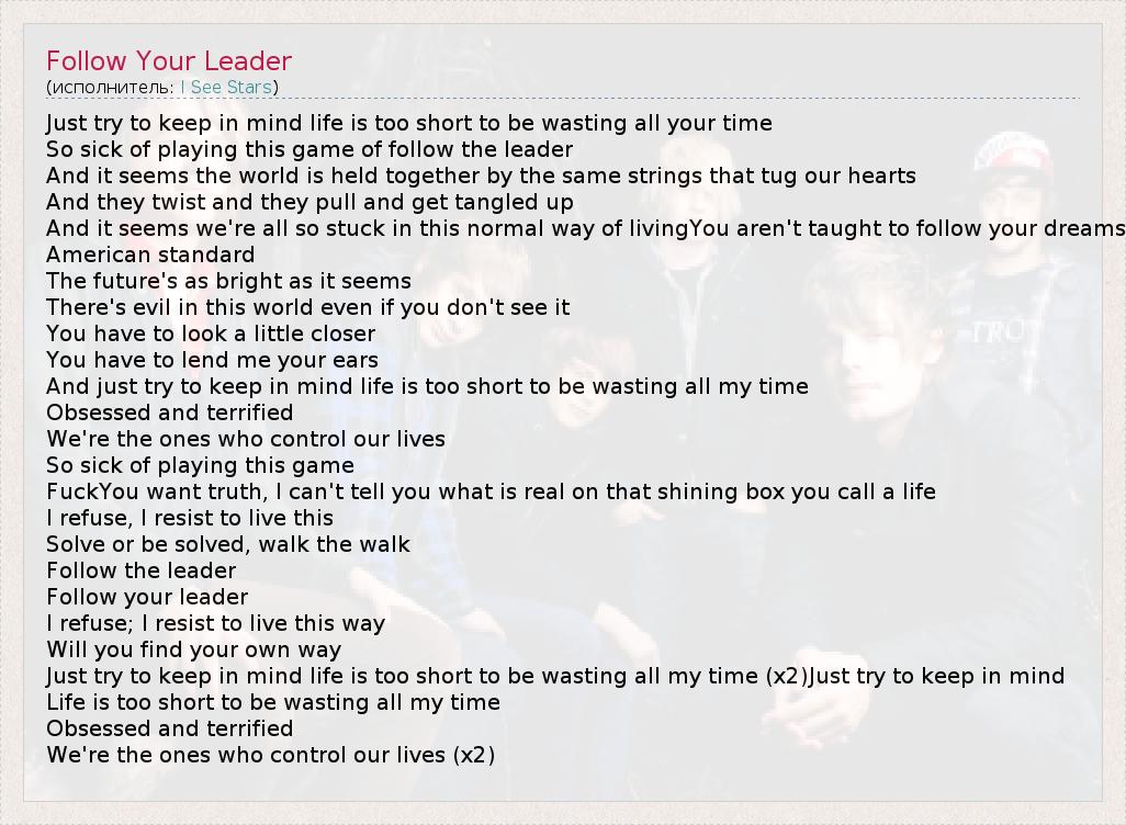 А как ты думаешь, о чем песня "Follow Your Leader" ?