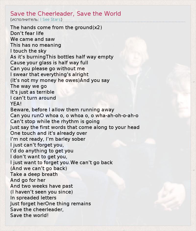 А как ты думаешь, о чем песня "Save the Cheerleader, Save the World" ?