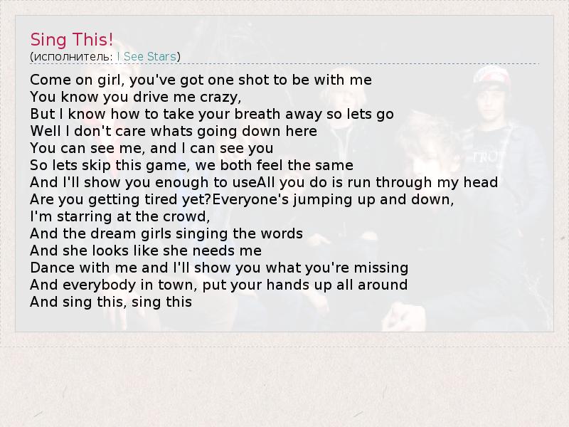 Это интересно:I See Stars – американская пост-хардкор, электроник-группа из города Уоррен, штат Мичиган.Группа состоит из 6 человек, возраст которых варьируется от 19 до 22 лет. Несмотря на свой юный возраст, ребята играют вместе уже с 2006 года. С того момента в течение двух лет они играли каждую субботу в своём родном городе, чтобы дать о себе знать. На счету группы один мини-альбом Green... продолжение