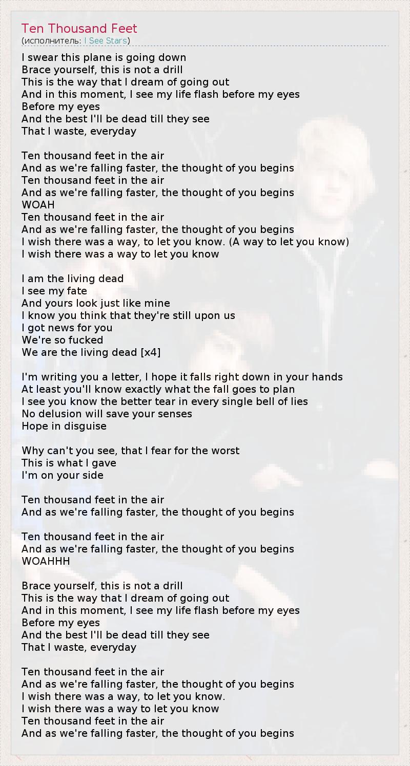 А как ты думаешь, о чем песня "Ten Thousand Feet" ?