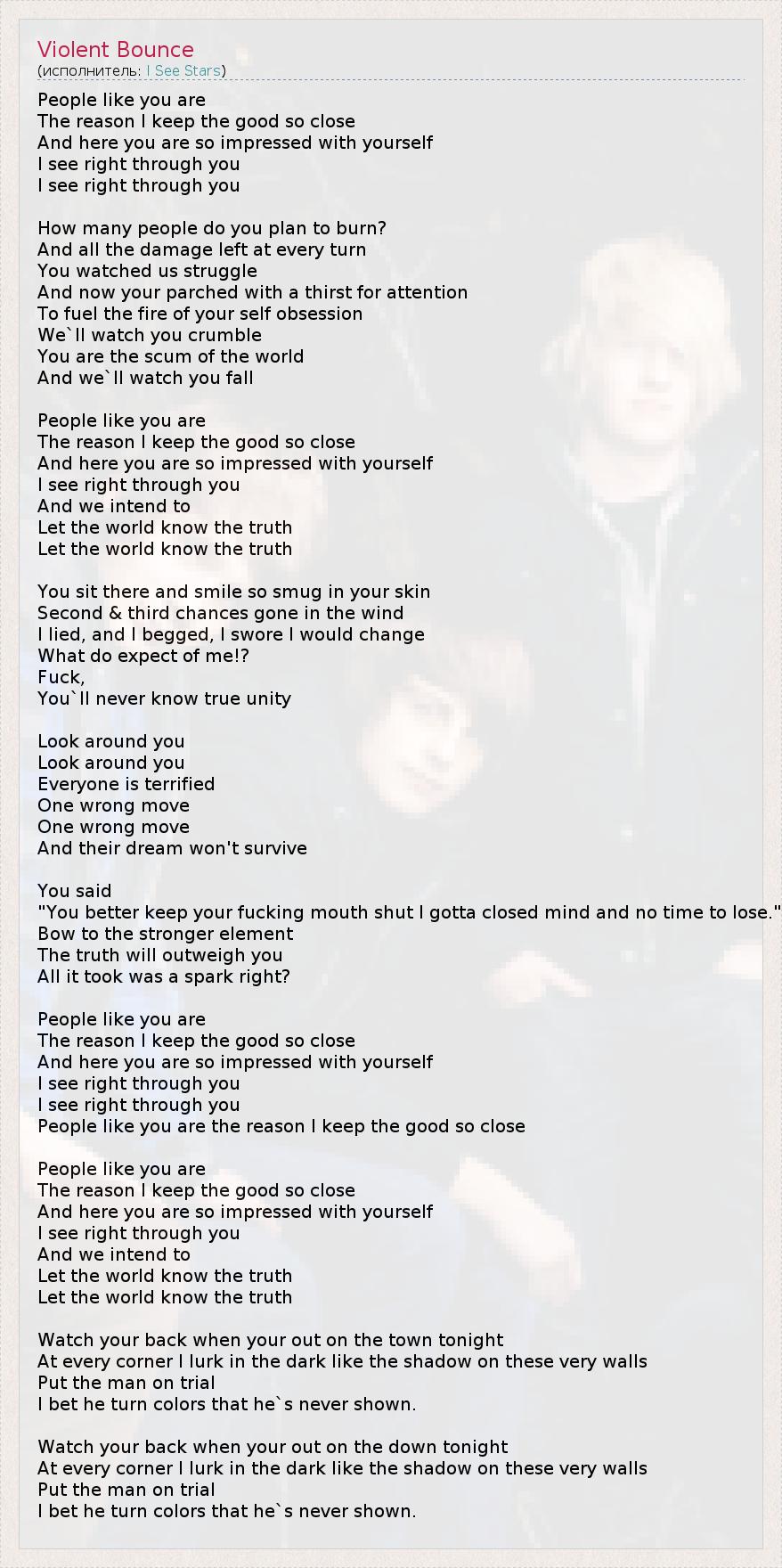А как ты думаешь, о чем песня "Violent Bounce" ?
