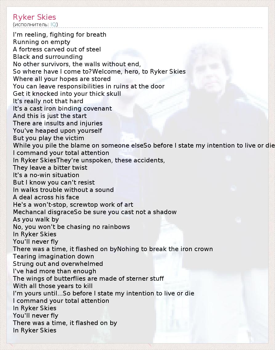 А как ты думаешь, о чем песня "Ryker Skies" ?