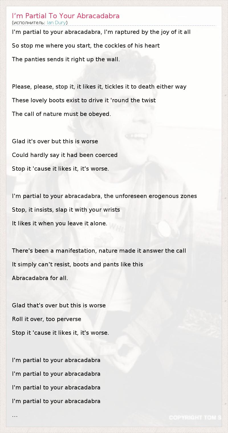 ГлавнаяИсполнителиIan DuryI’m Partial To Your Abracadabra