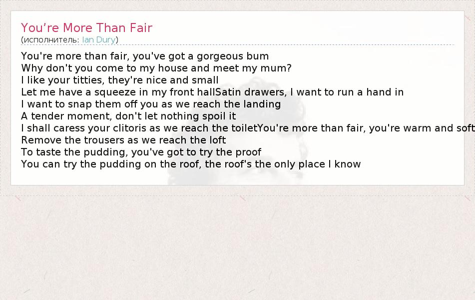 ГлавнаяИсполнителиIan DuryYou’re More Than Fair