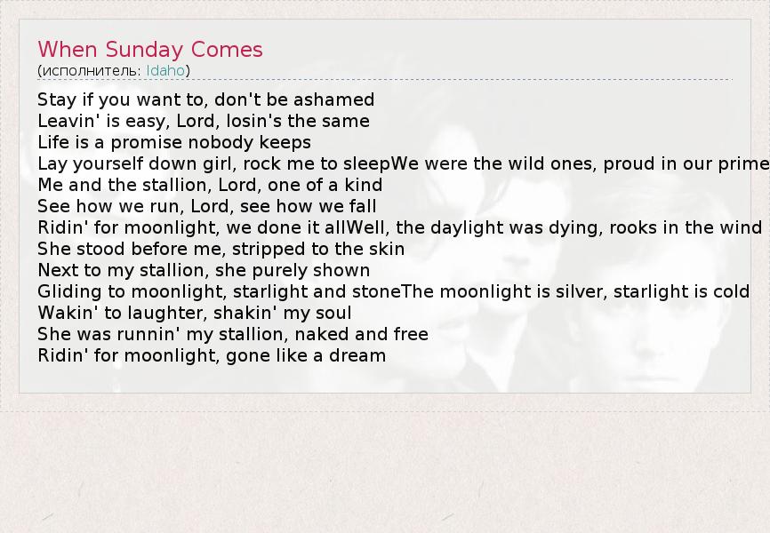 А как ты думаешь, о чем песня "When Sunday Comes" ?