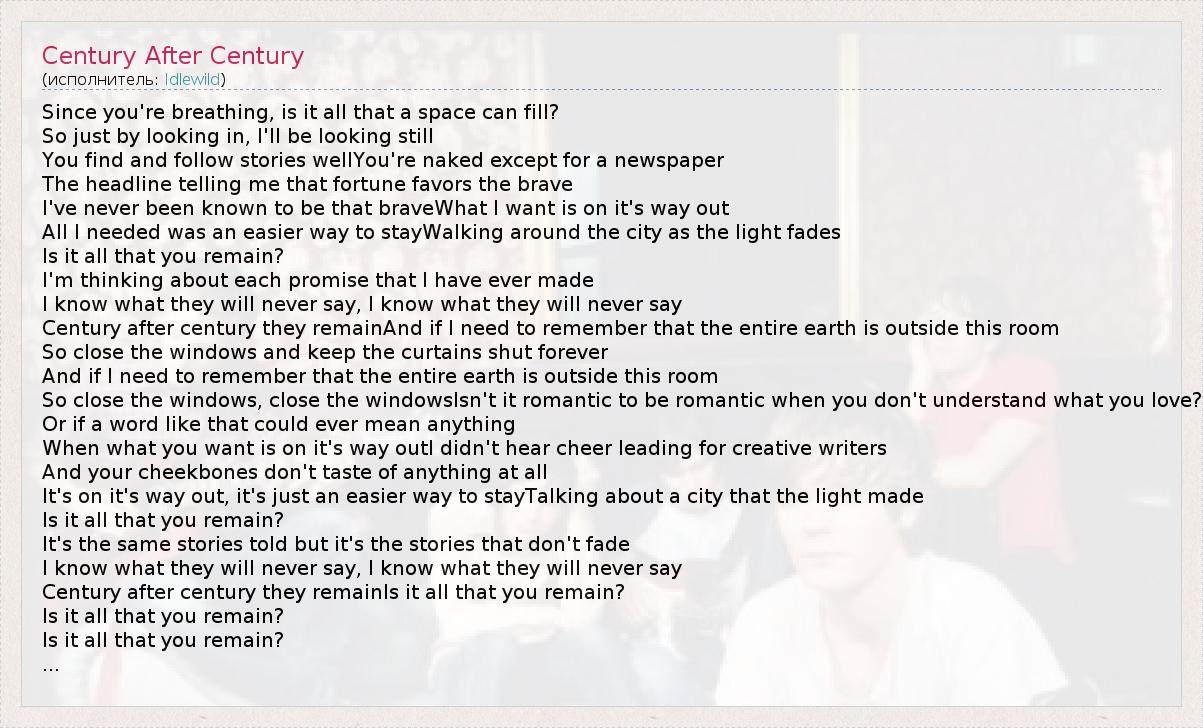 ГлавнаяИсполнителиIdlewildCentury After Century