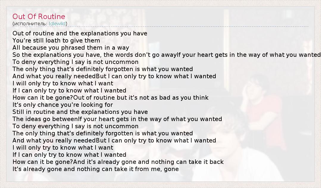 А как ты думаешь, о чем песня "Out Of Routine" ?