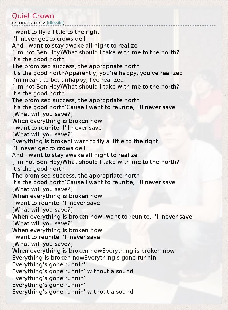 А как ты думаешь, о чем песня "Quiet Crown" ?