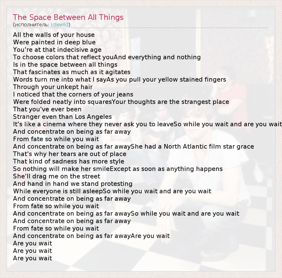 А как ты думаешь, о чем песня "The Space Between All Things" ?