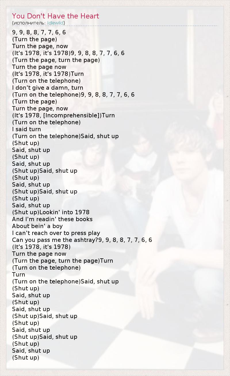 А как ты думаешь, о чем песня "You Don't Have the Heart" ?