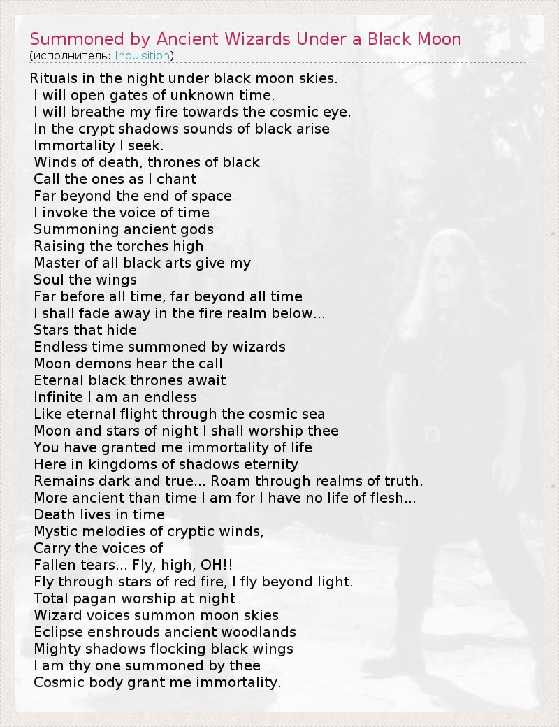 А как ты думаешь, о чем песня "Summoned by Ancient Wizards Under a Black Moon" ?