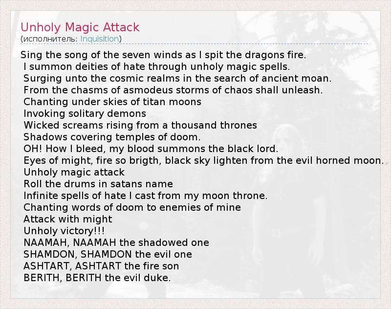 А как ты думаешь, о чем песня "Unholy Magic Attack" ?