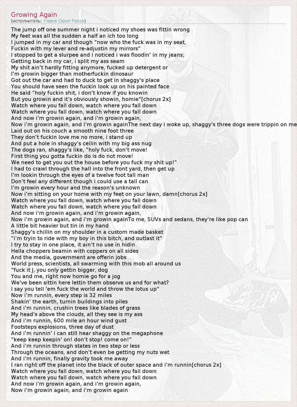 Now i'm growin again, and i'm growin againThe next day i woke up, shaggy's three dogs were trippin on me