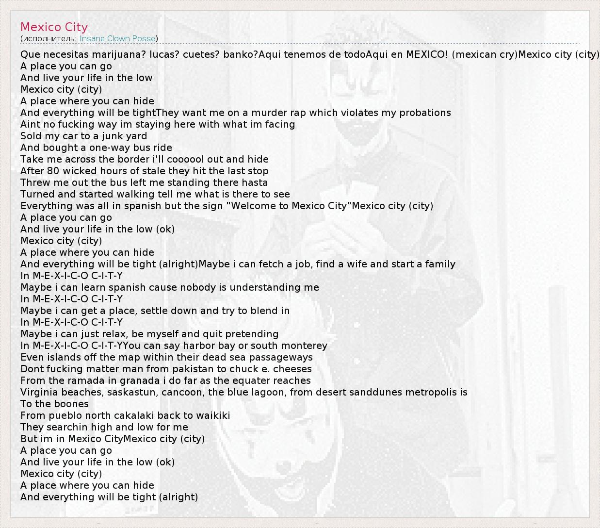 Это интересно:Insane Clown Posse (также известны как ICP) — хип-хоп дуэт из города Детройт, штат Мичиган. Состоит из Джозефа Брюса (Violent J) и Джозефа Утслера (Shaggy 2 Dope). Исполняют подвид хардкор-рэпа, который известен под названием хорроркор со своими мрачными, жестокими текстами. Скандально известны из-за своих мрачных, жестоких и кровожадных песен и благодаря своим атмосферным, детально проработанным концертам.По... продолжение