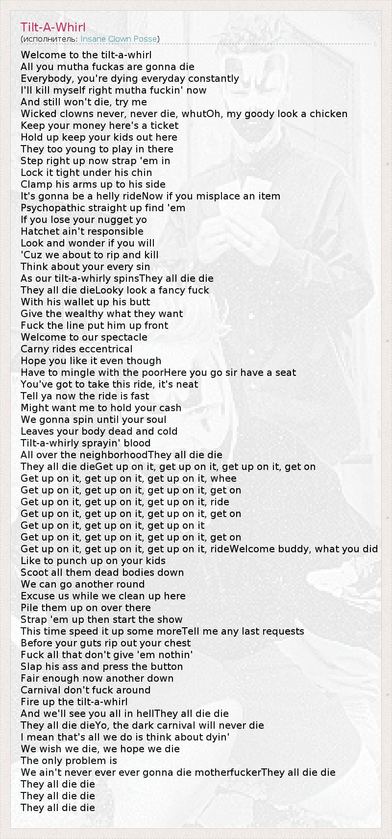 А как ты думаешь, о чем песня "Tilt-A-Whirl" ?