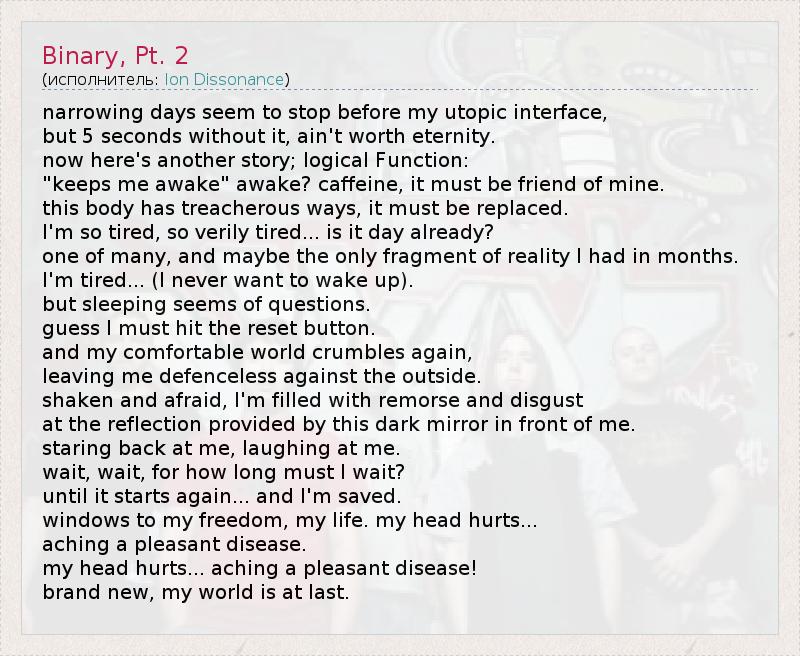 А как ты думаешь, о чем песня "Binary, Pt. 2" ?